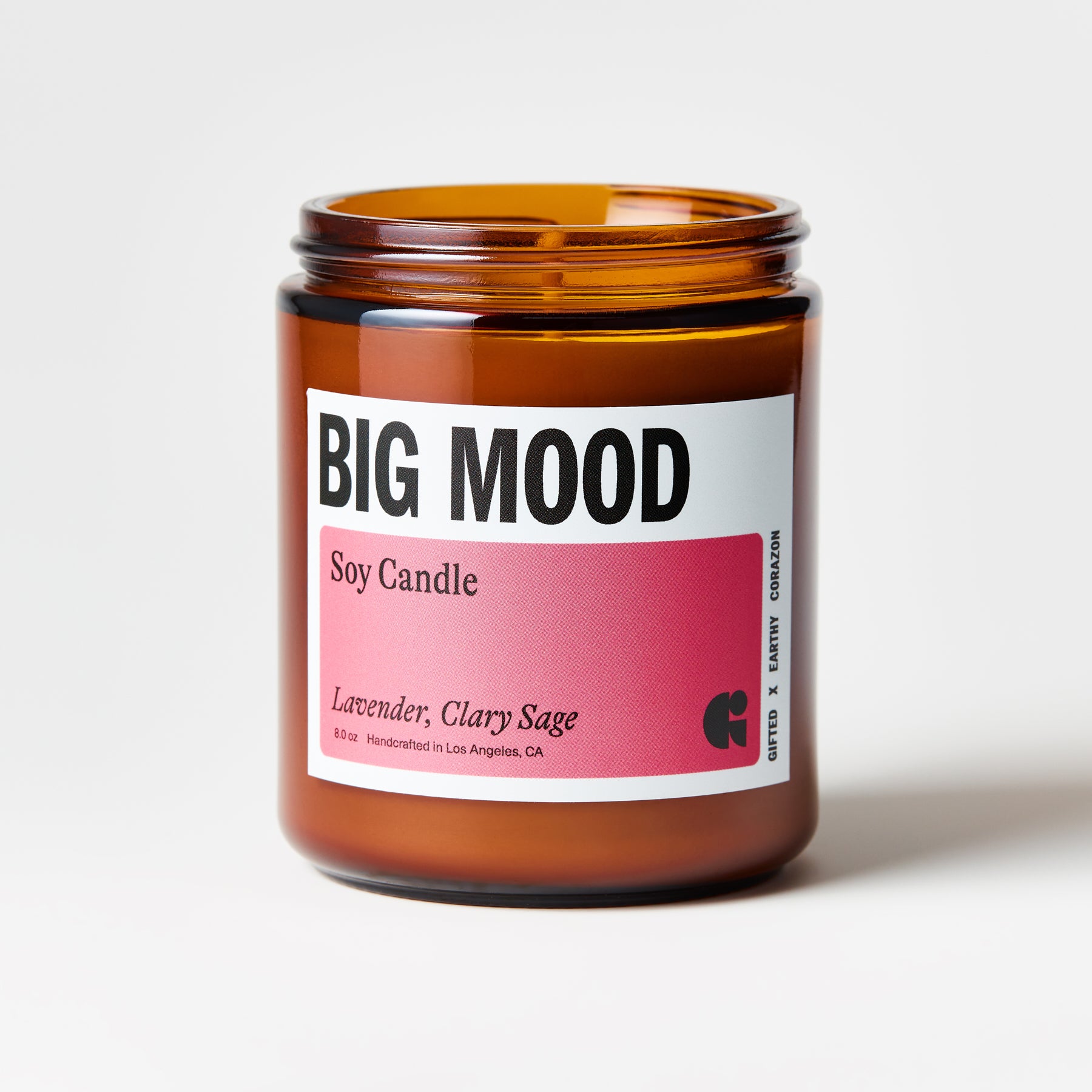 BIG MOOD Soy Candle handmade by Earthy Corazon: Set the tone with calm and confidence of lavender and clary sage for a mood that’s boldly balanced.