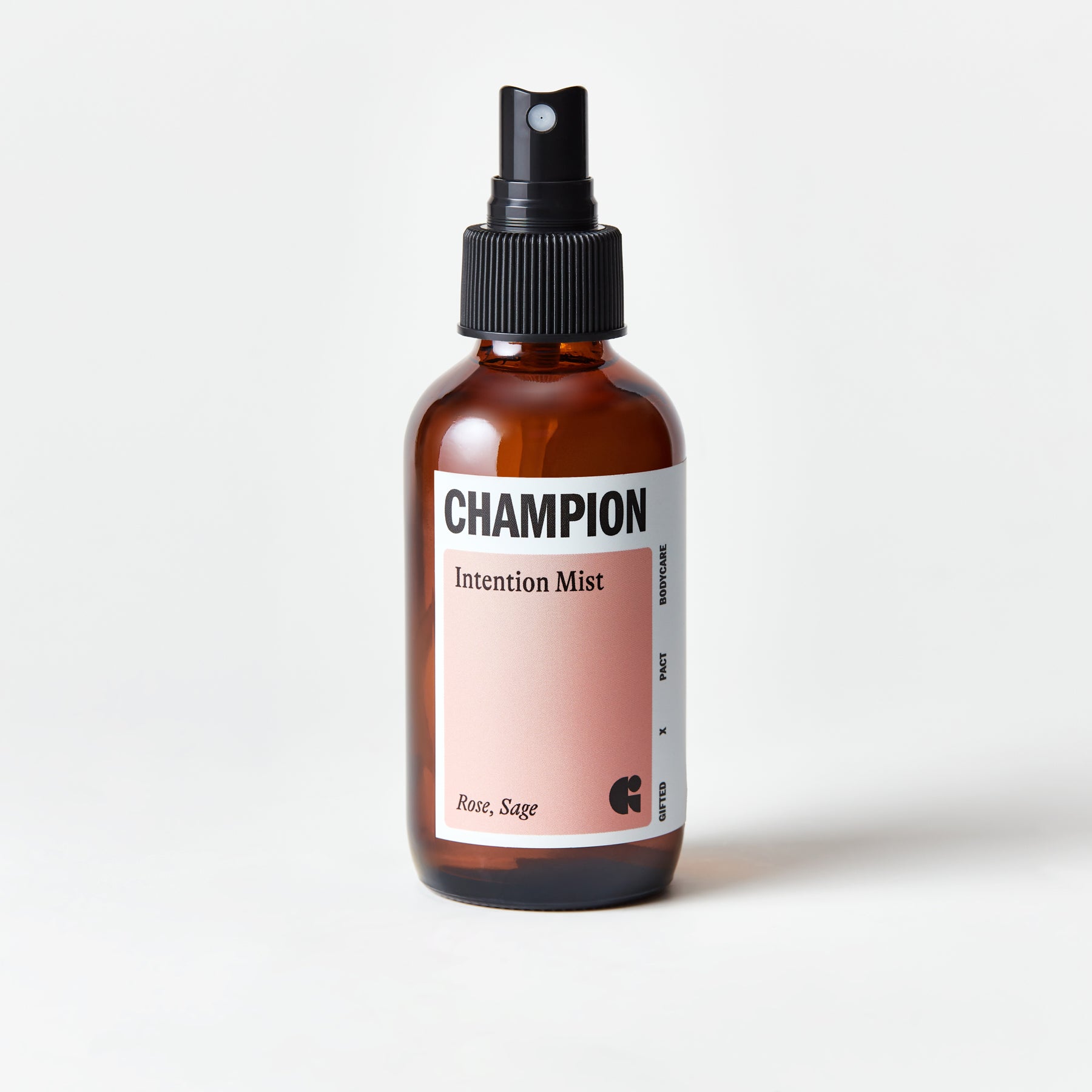 Champion Intention Mist handmade by PACT Bodycare: Take a bow with the confident blend of rose and sage—crafted for those who shine.