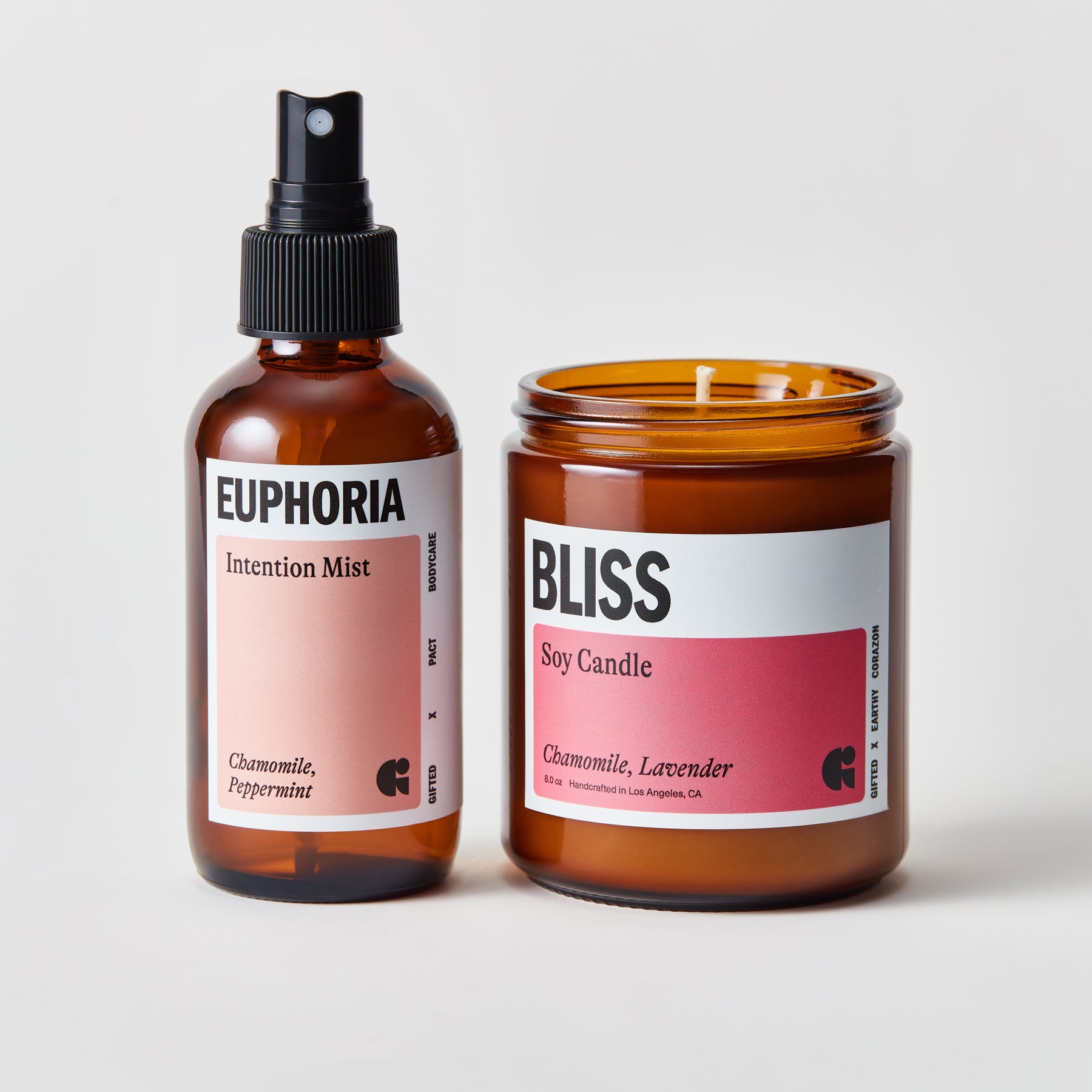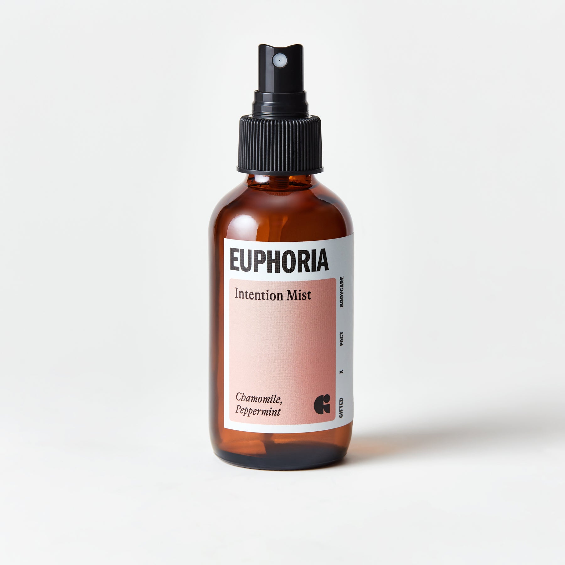Euphoria Intention Mist handmade by PACT Bodycare: Unleash joyful energy with the striking blend of chamomile’s softness and peppermint’s spice.