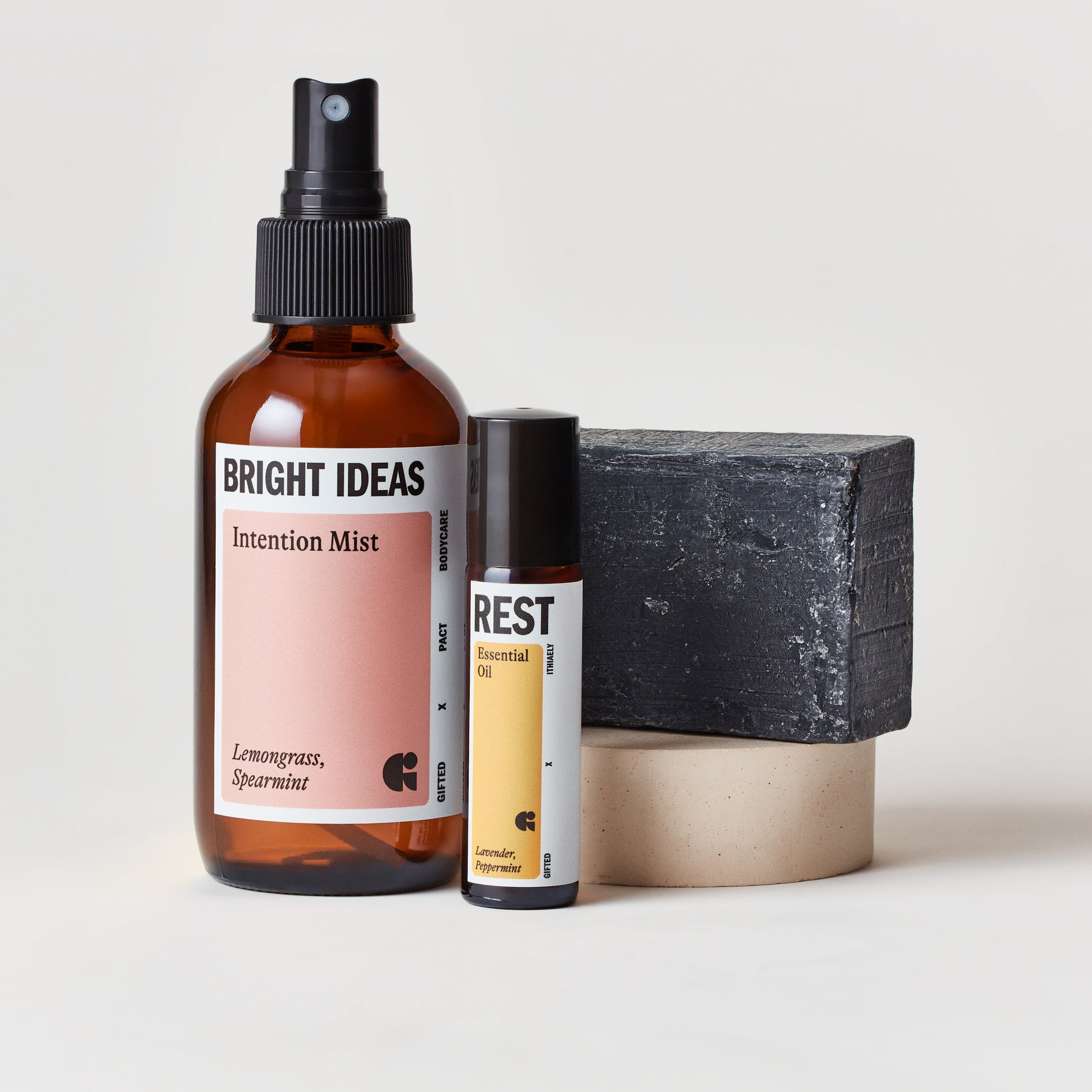 Bright Ideas Intention Mist handmade by PACT Bodycare: Refresh your space and inspire creativity with lemongrass and spearmint to unlock your next great idea.
