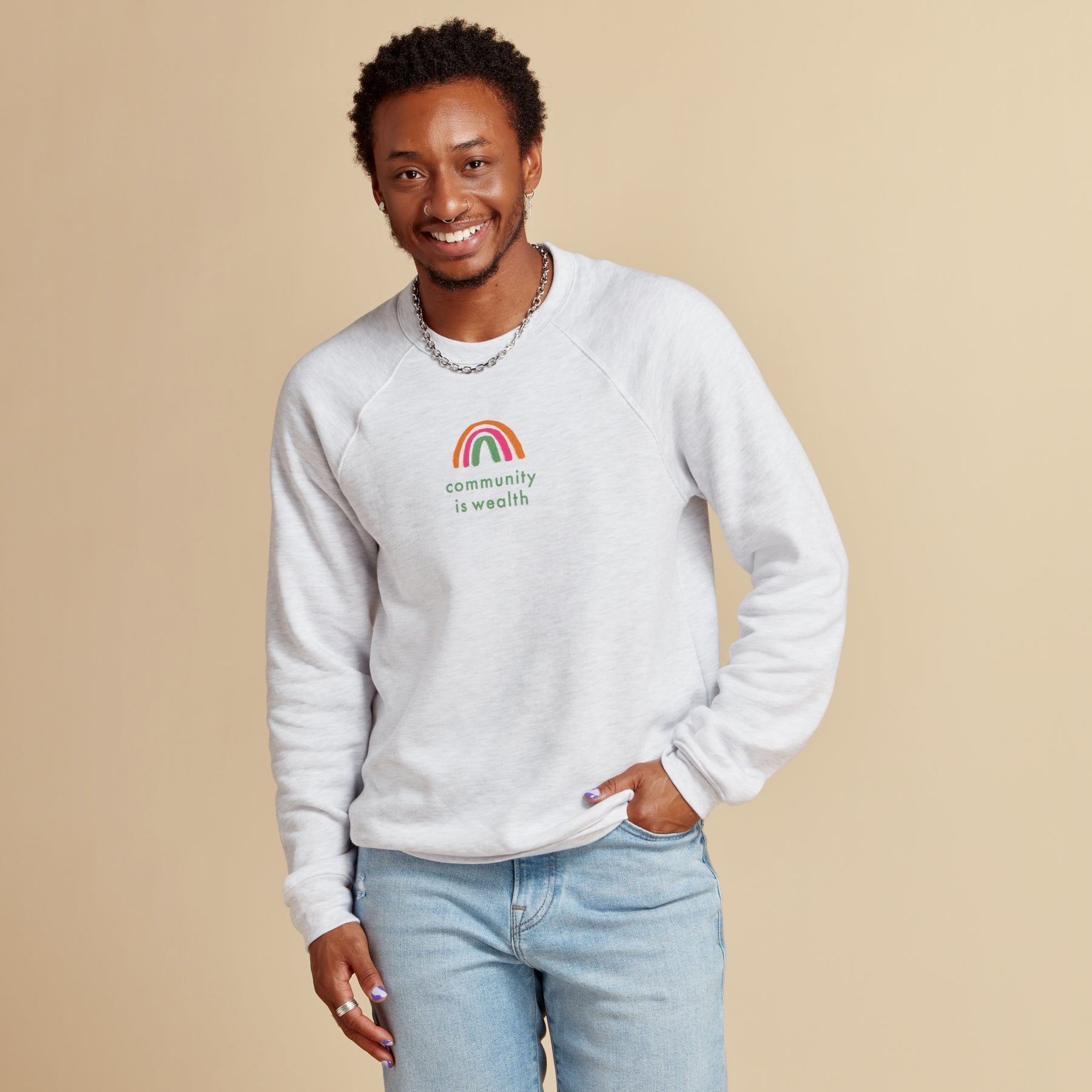 This sweatshirt is available in unisex XS–XXL.