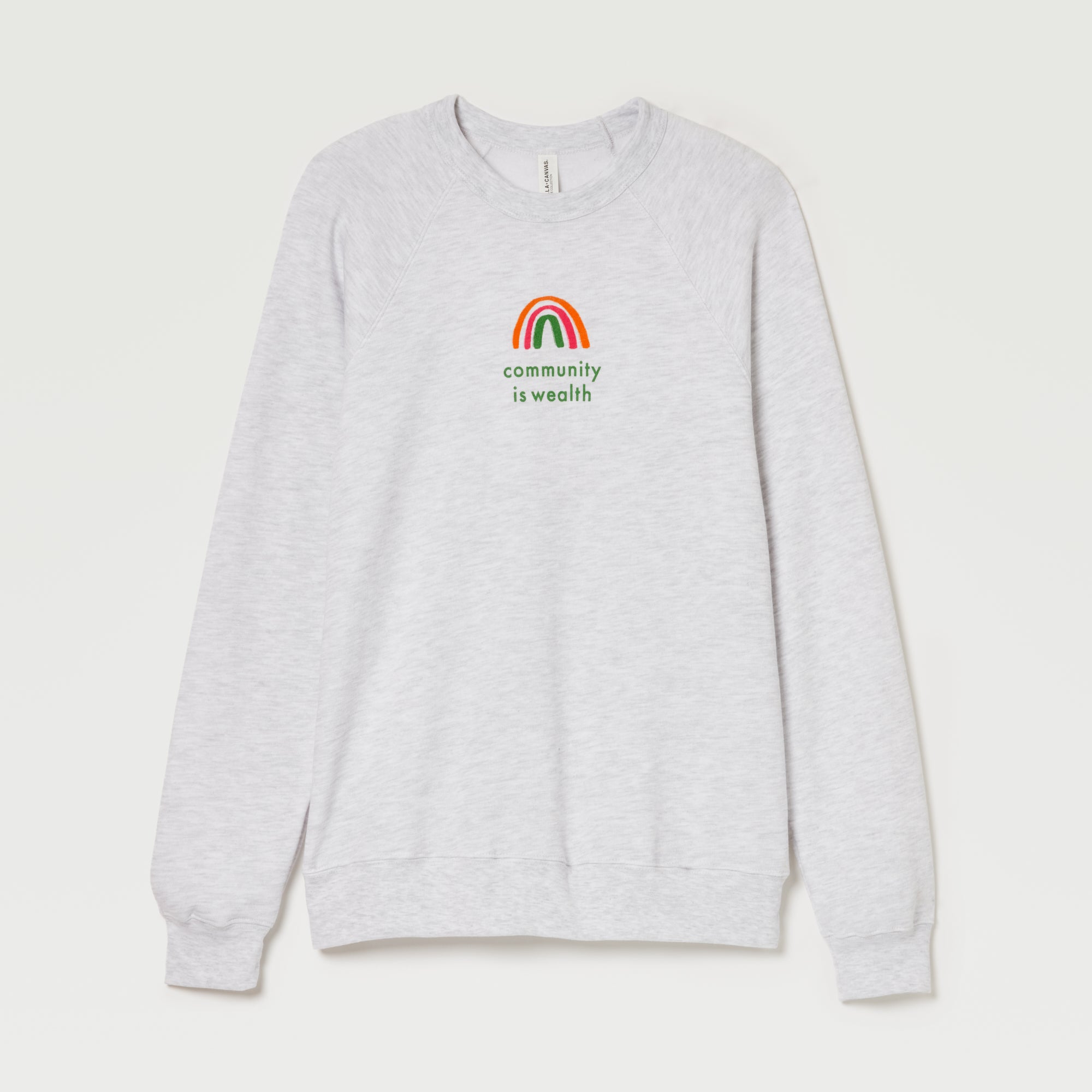 Crewneck, ash grey sweatshirt with extra soft fleece lining.