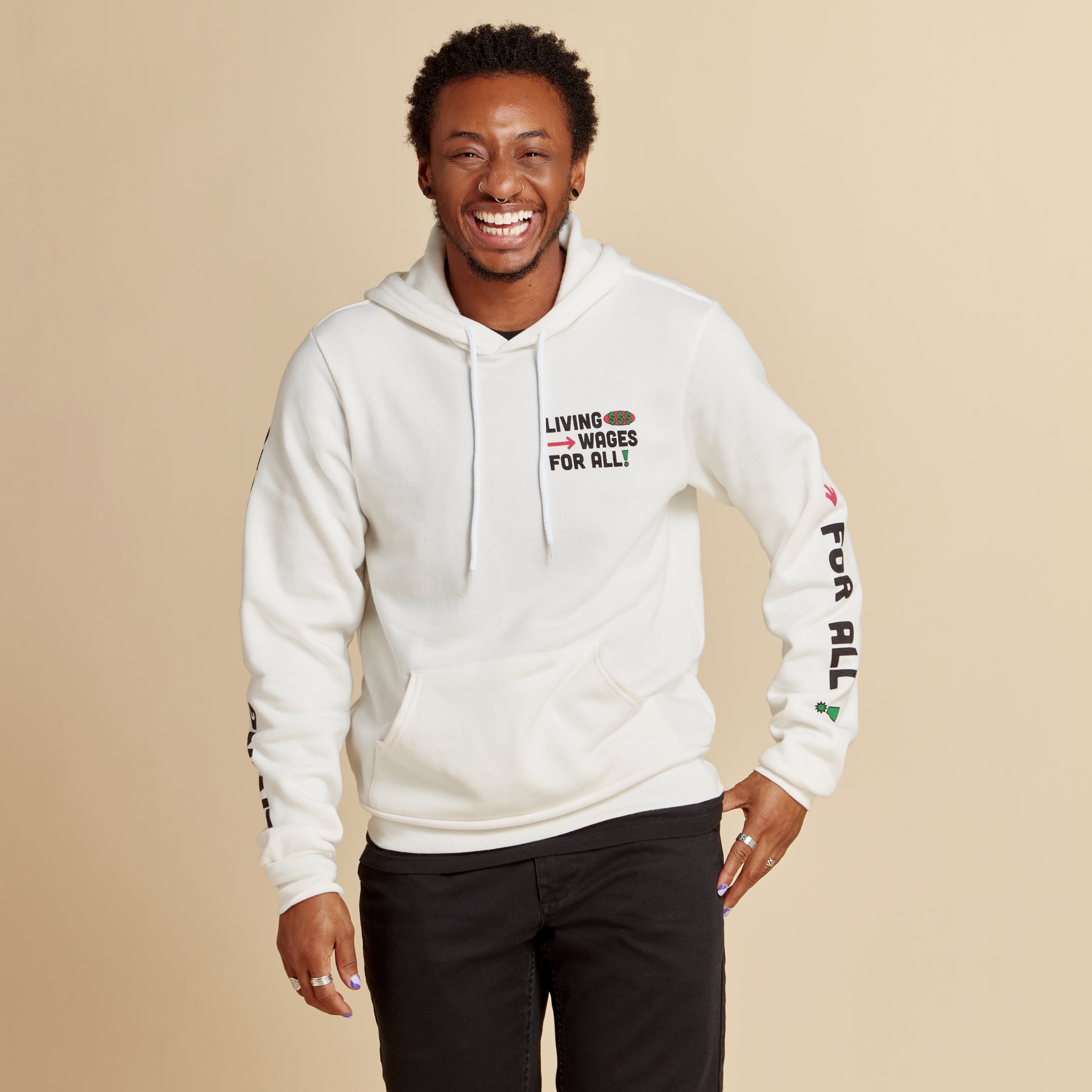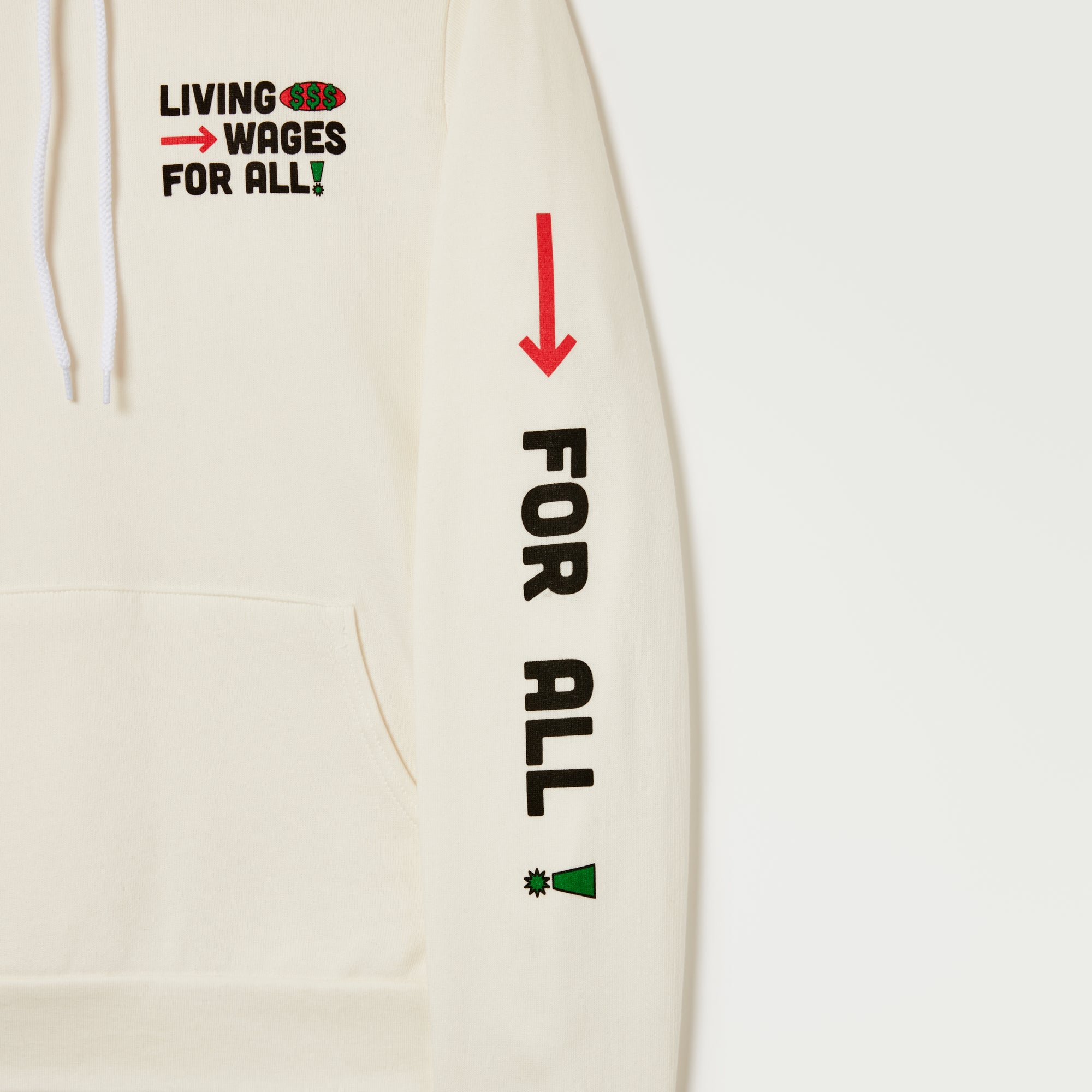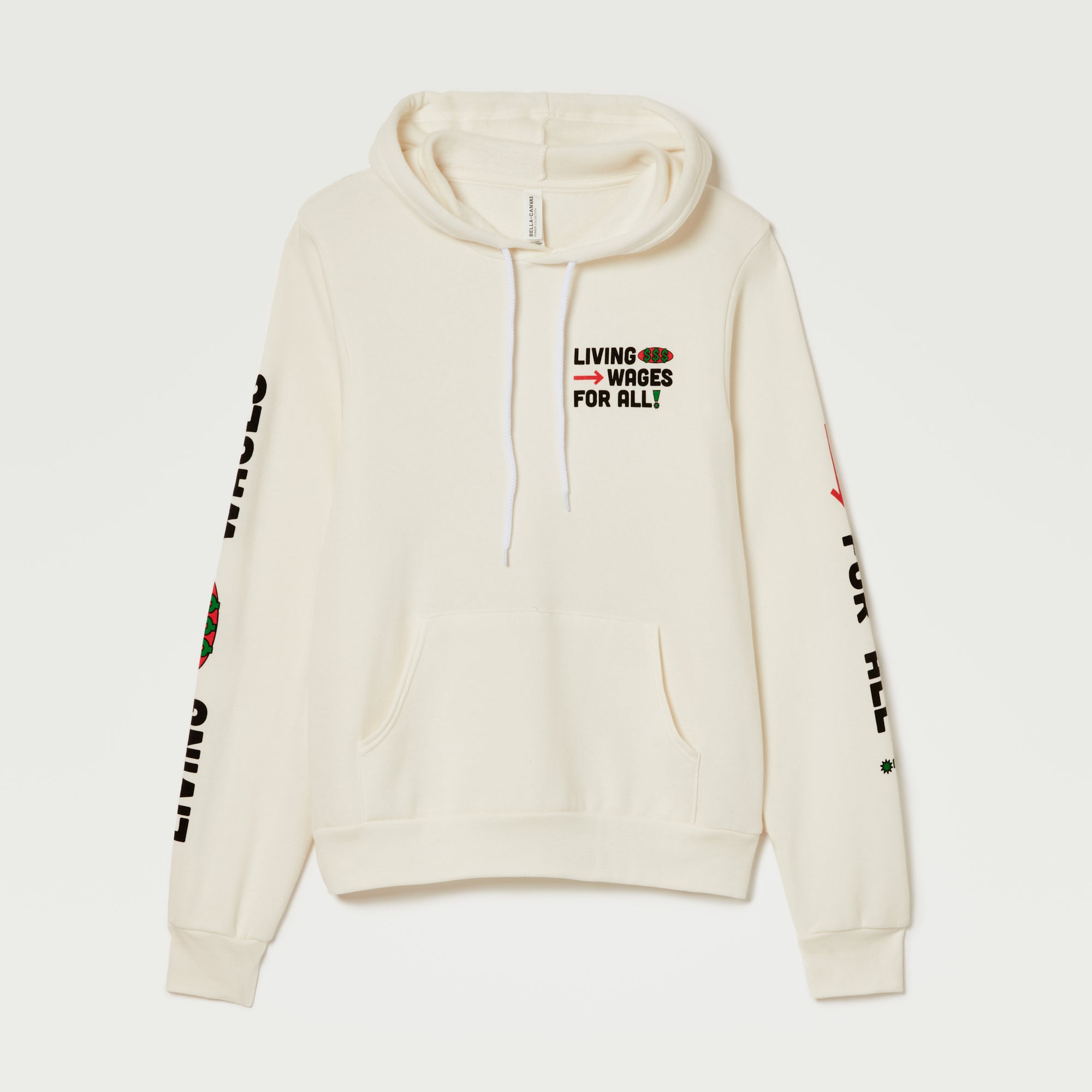 Created by living-wage employees, this statement piece highlights a startlingly simple but often silenced reality: fair pay leads to safety, wellness, and economic security.