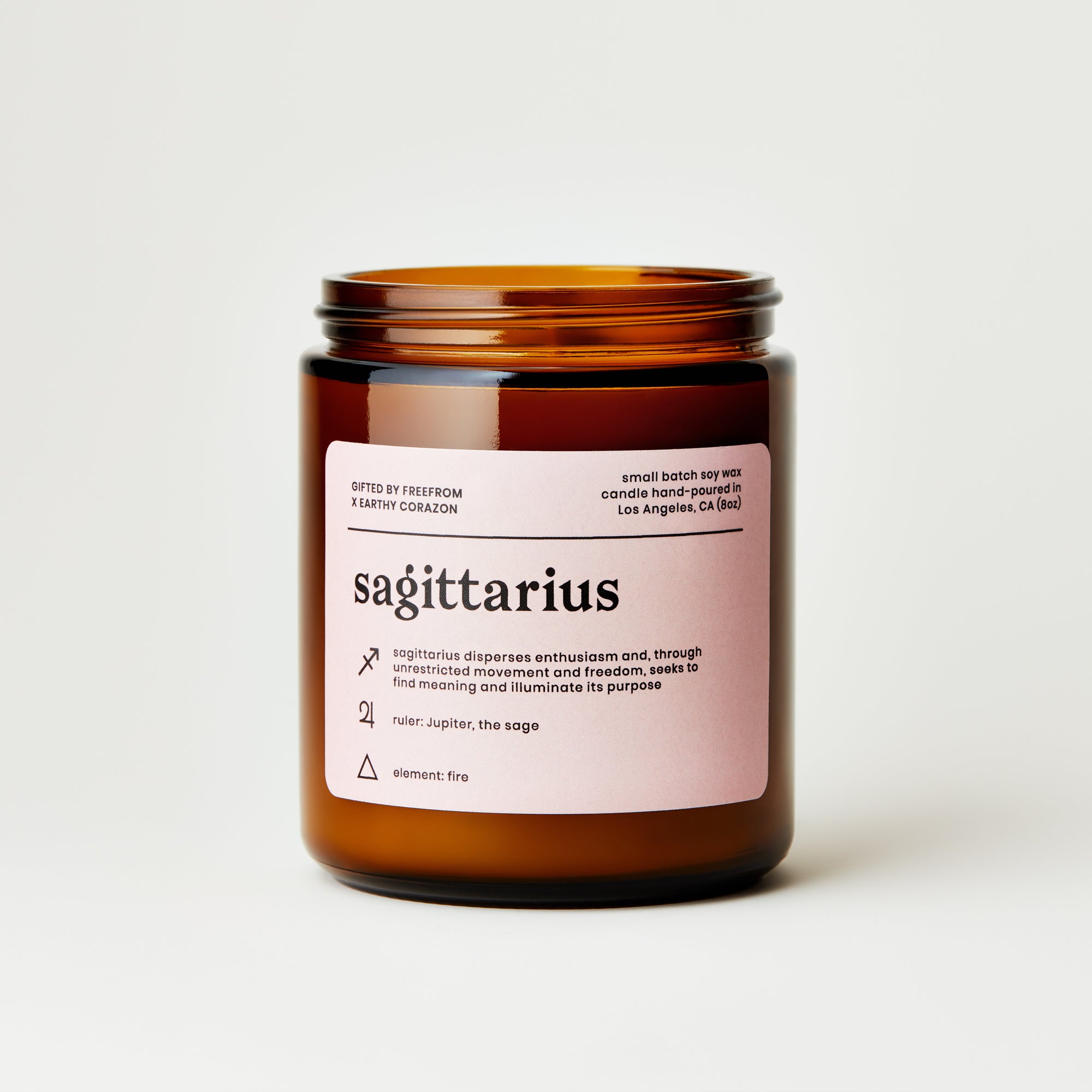 Celebrate the magic of Sagittarius. This self-affirmation gift box for Sagittarius contains and Sagittarius candle, peach soap, and a Sagittarius essential oil blend.