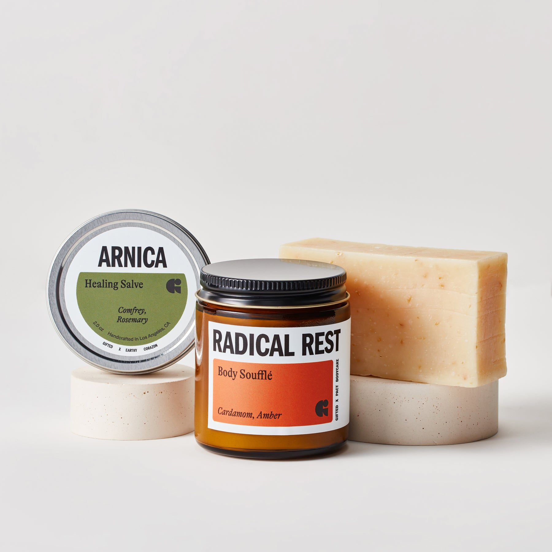The Arnica balm is my winter balm for the achy joints at this mature age of mine. The Radical Rest body souffle is beyond divine and a permanent part of my after shower ritual. Not only do these products feel great on the body but supporting such a great cause/business is feels good in the soul. win-win. buy buy now.