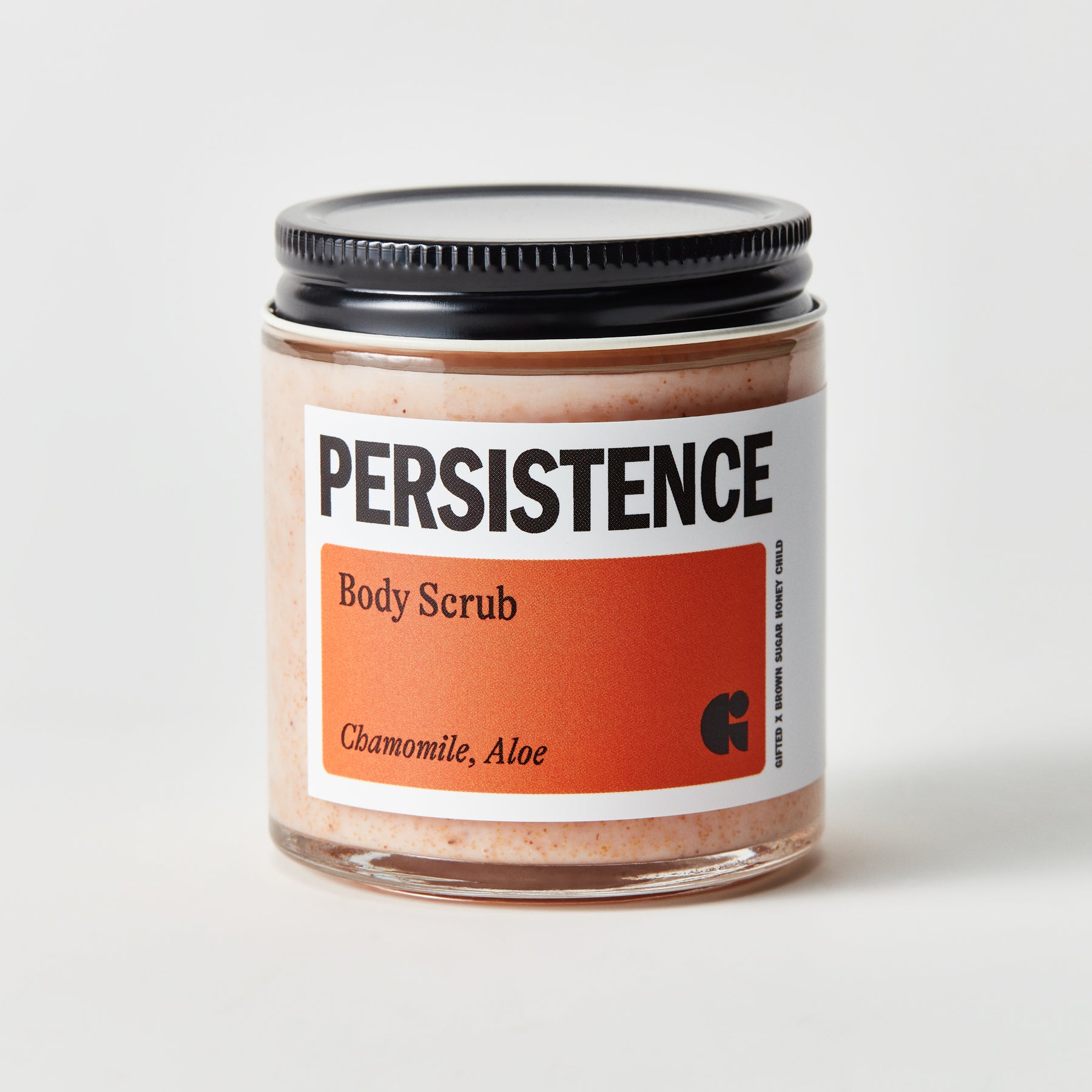 Persistence Body Scrub handmade by Brown Sugar Honey Child: Gentle exfoliation meets soothing chamomile and aloe for skin that never quits.