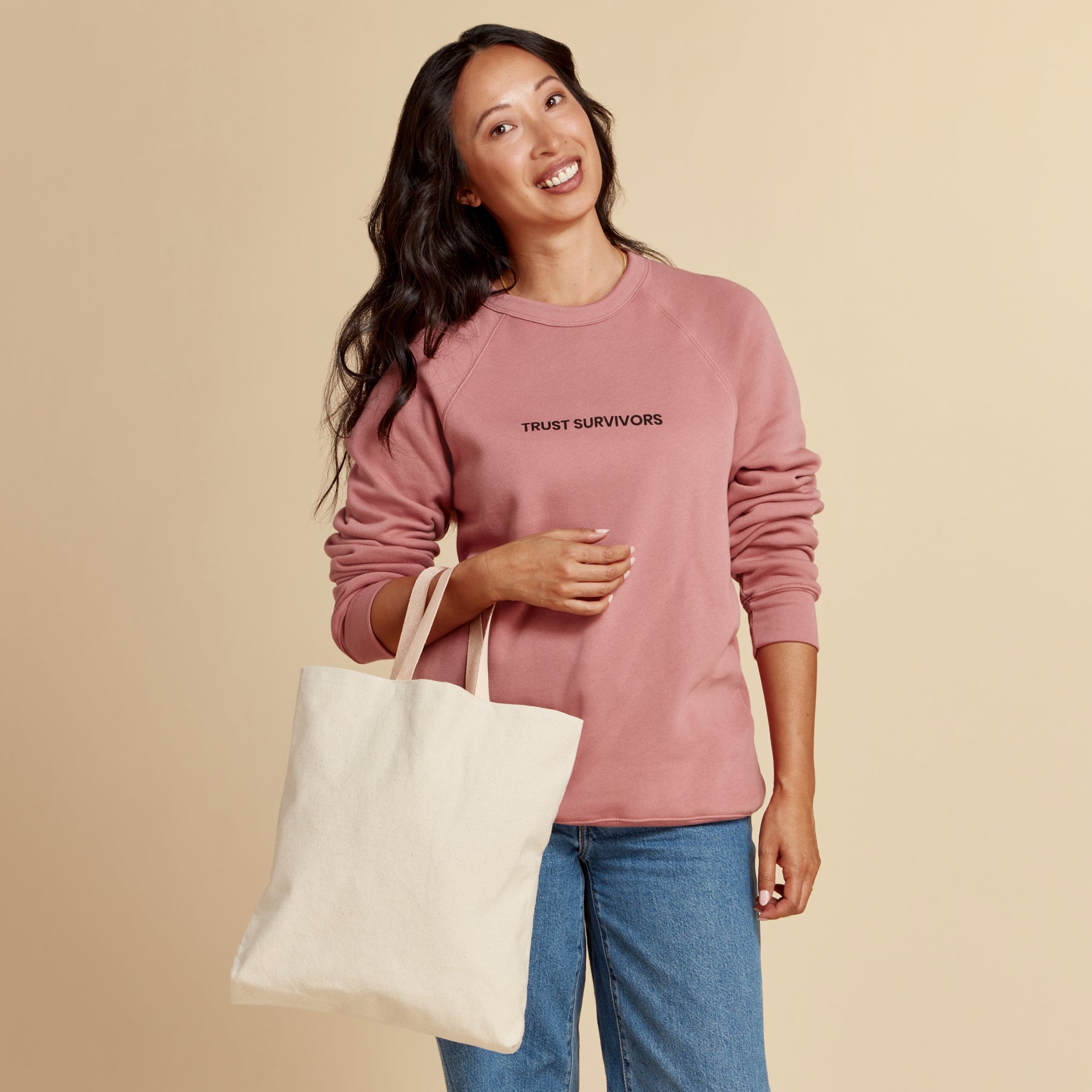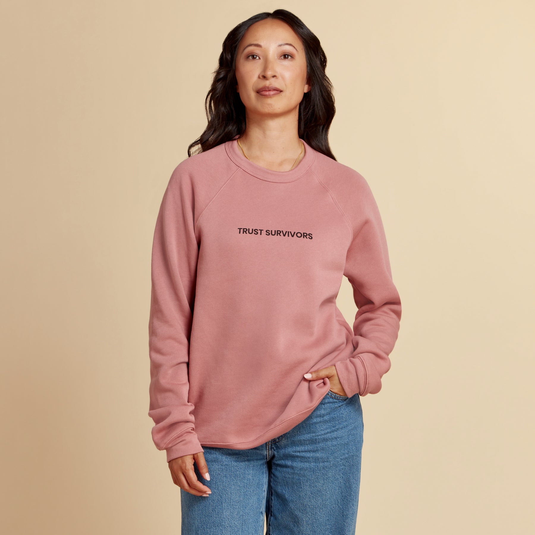 Crewneck, rose sweatshirt with extra soft fleece lining.